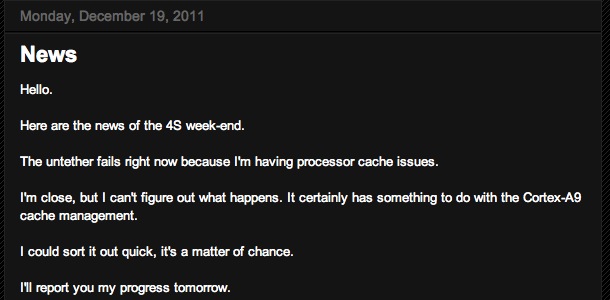 Read MoreΠριν λίγο ο γνωστός hacker @pod2g αναφέρει σε ένα νέο post στο blog του ότι το untethered jailbreak στο οποίο